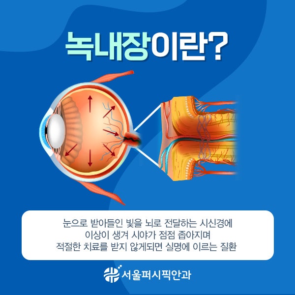 녹내장 가족력 당뇨 고혈압 동맥경화로 인한 혈류장애 초고도 근시 심각한 안구 외상이 반복되는 포도막염