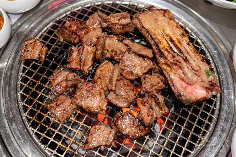 우대포 메뉴는 구이 3종류와 함께 식사로 구성되어 있는데 깍두기 모양의 차돌갈비와 양념소갈비가 대표 메뉴이며 추천 메뉴로 왕갈비(생/양념)가 있습니다. 전에 왕갈비 빼고 다 먹어봐서 이번에는 왕갈비 양념장 선택! 매일 한정 판매하는 깍두기 필수로 주문했어요~ 식사는 가락국수 하나랑 차돌마라볶음밥 골라봤어요.가격을 보면 꽤 합리적인 느낌이 들지만 부담없이 맛있는 소갈비를 즐길 수 있어서 인기가 많을 것 같아요. ^^